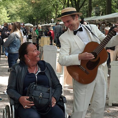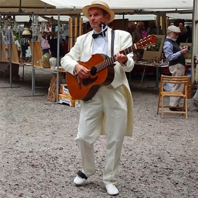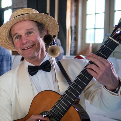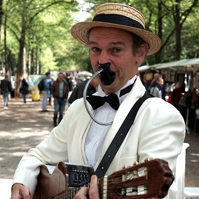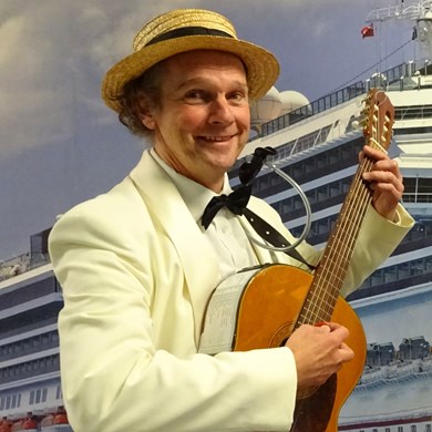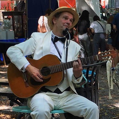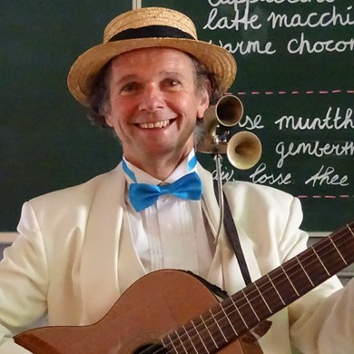 Deze chique troubadour met humor houdt van spontane interactie en heeft een onuitputtelijk repertoire.